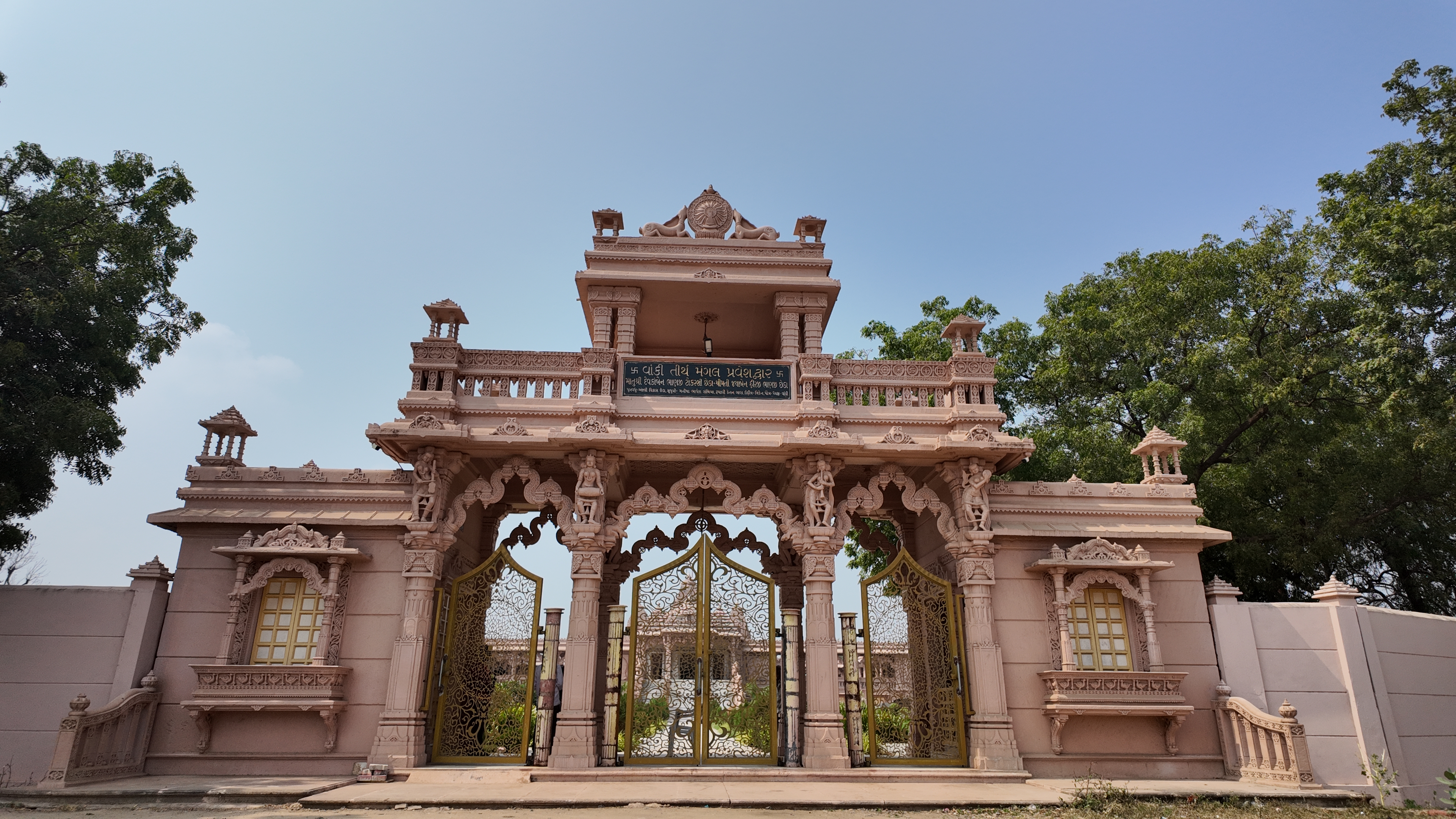 જિનાલયનાં ચારે ખૂણે કોતરણીમય સ્તંભ, કલાત્મક ઝરૂખો, કઠેડો, પ્રવેશદ્વારના પગથિયે ફુલ માળા લઈને ઉભેલા ગજરાજ, વનરાજ આ તીર્થમાં આવેલા ને આવકારી રહ્યા છે.